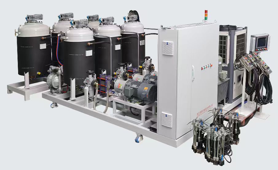 多機頭高壓機工作站式生產線由多機頭高壓發泡機、機械手、模架、自動控制系統等各裝置組成 適用于大型汽車內外飾、大型汽車裝配件、汽車前后圍、汽車地毯、大件家具、床墊等配合大型固定式模架閉模澆注生產 高效、低風險操作生產,生產工位布局靈活