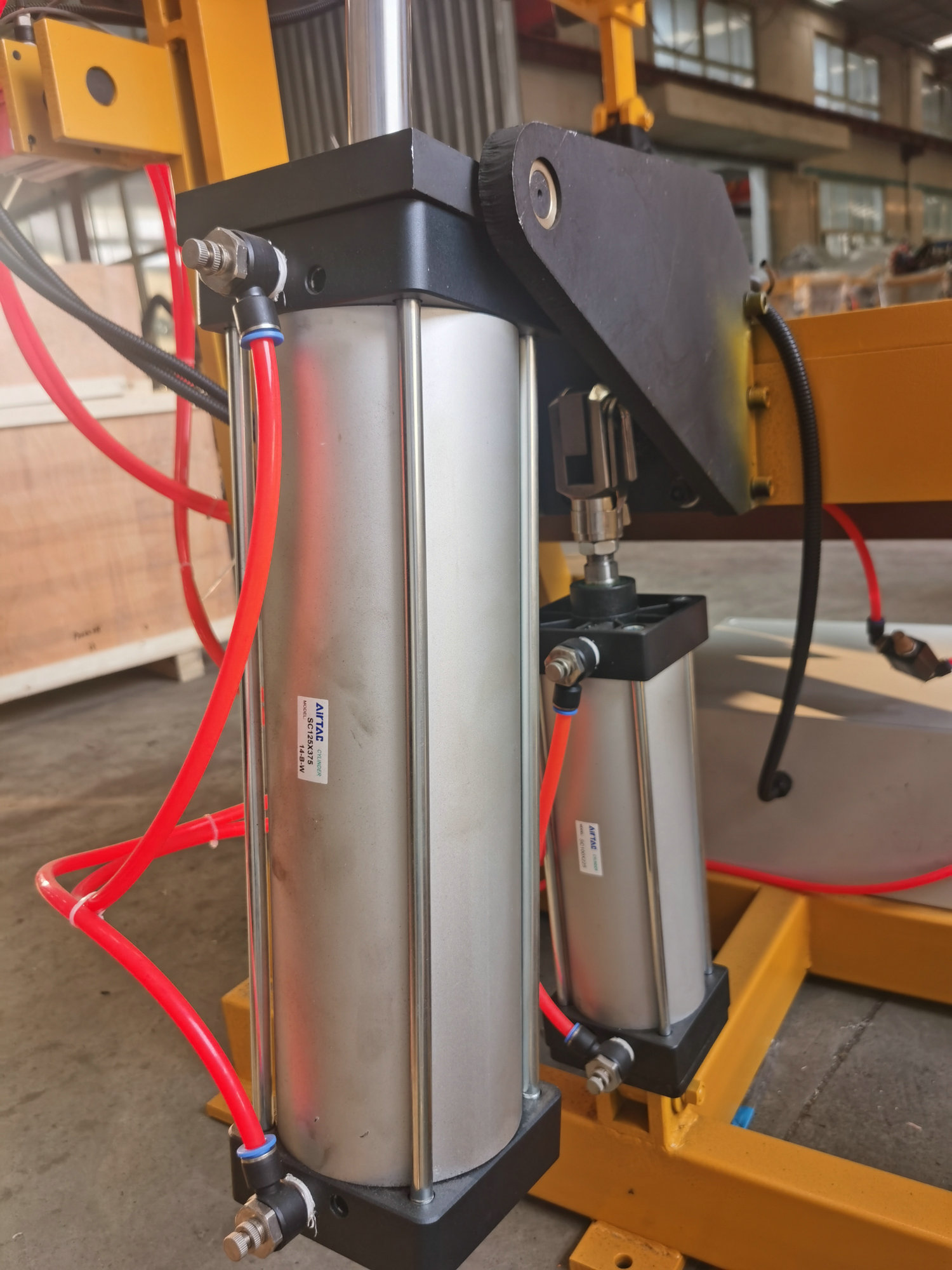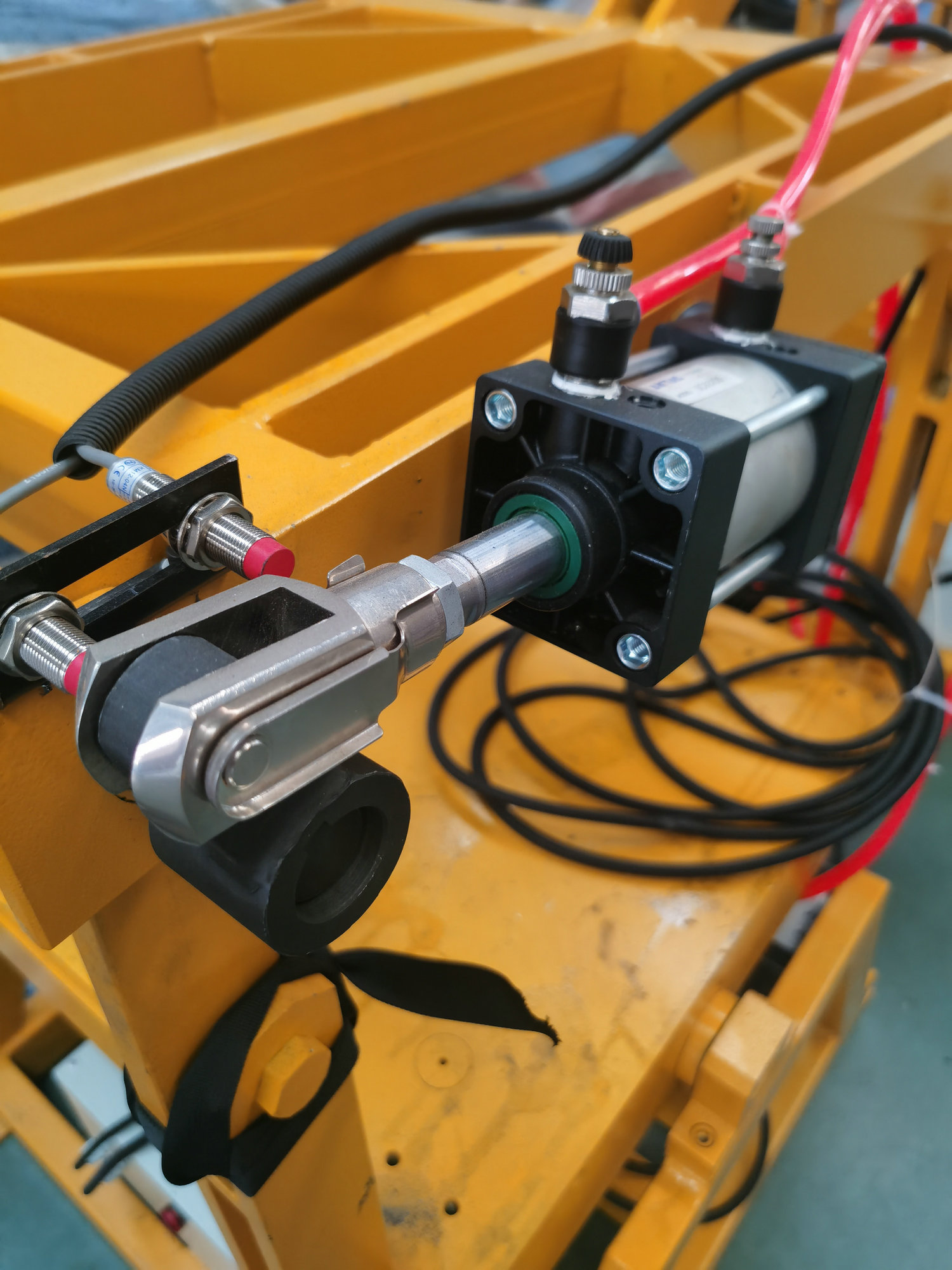 氣動模架由底座、上架、載模板、轉動銷、轉動連板、氣動回路以及控制電路構成,采用PLC控制,由氣缸完成開合模及鎖模動作。